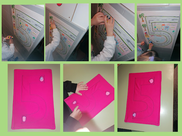 - TRABAJAMOS EL TRAZO DEL NÚMERO CINCO, EN EL PAPEL CONTINUO Y COMPONIÉNDOLO EN LA TABLITA DE MADERA. EL CINCO ES DIFÍCIL DE TRAZAR PORQUE EMPIEZA EN DIRECCIÓN CONTRARIA A LOS NÚMEROS QUE HEMOS TRABAJADO HASTA AHORA, POR ELLO VAMOS A PRACTICAR DE UNA FORMA DIVERTIDA.